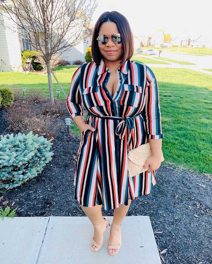 ارتدي الفساتين الواسعة والطويلة التي يتخطى طولها منطقة الركبة مع زوج من أحذية الكعب العالي.