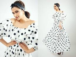 من المعروف عن النجمه الهنديه ديبيكا بادكون حبها الشديد للأزياء والموضه وظهرت متألقه بصيحه البولكا دوت حيث ارتدت فستان ابيض اوف شولدر طويل منقوش بنقاط البولكا السوداء ونسقت الإطلاله بعصابة رأس من الساتان الأسود وزوج من احذيه الكعب العالي باللون الأسود ايضًا وبهذا تكون ديبيكا قد منحت صيحه البولكا دوت إطلاله كلاسيكيه تعود للأربعينيات من القرن الماضي.