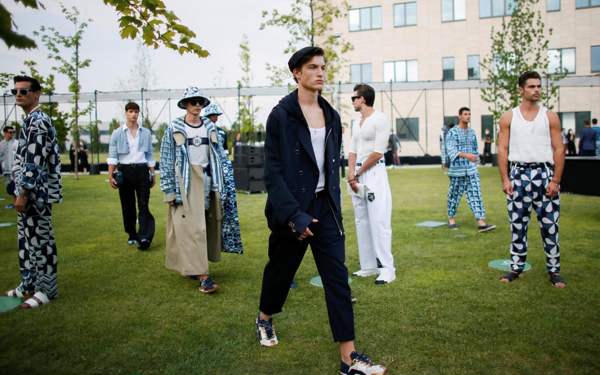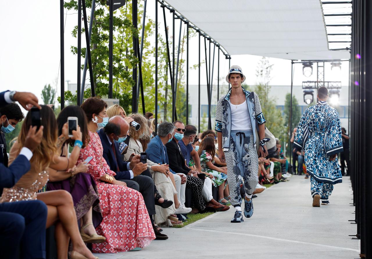 كجزء من أسبوع الموضة الرجالية في ميلانو ، دولشي أند غابانا تطلق عرض أزياء جديد يراعي قواعد التباعد الاجتماعي فبينما كان العارضون يسييرون في المنصة، كان الجمهور يرتدي أقنعة الوجه ويفصل بين كل واحد والأخر مسافة لا تقل عن متر.