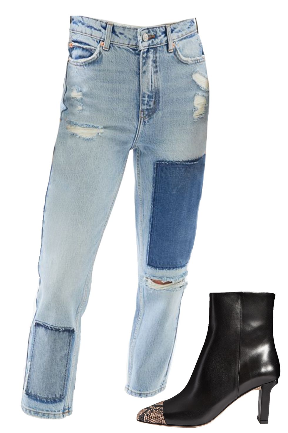 تفضل العديد من الفتيات إرتداء الجينز الباتش ورك وهو المكون من عدة رقعات قماشية مختلفة والحذاء المناسب لهذه الصيحة هو البوت الجلدي الأسود ذو الكعب العالِ.
