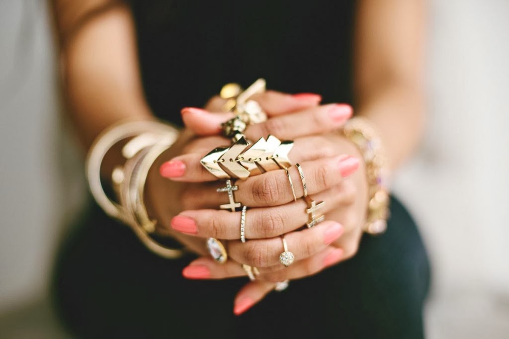 وعليكِ أن تتذكري ان موضة الخواتم المتعددة لا تعني إرتداء عدة خواتم في اصبع واحد فقط ولكن هو عبارة عن توزيع وتنسيق عدة خواتم على جميع الأصابع بشكل أنيق ويواكب الموضة بعيدًا عن الإبتذال.