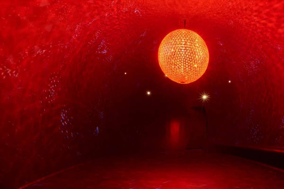 العمل الذي صممته الفنانة الضوئية من برلين سوسان روتنباخر تم صنعه باستخدام ثمانمائة ألف حبة كريستال لخلق تعايش مثالي بين الكريستال وانكسار الضوء.