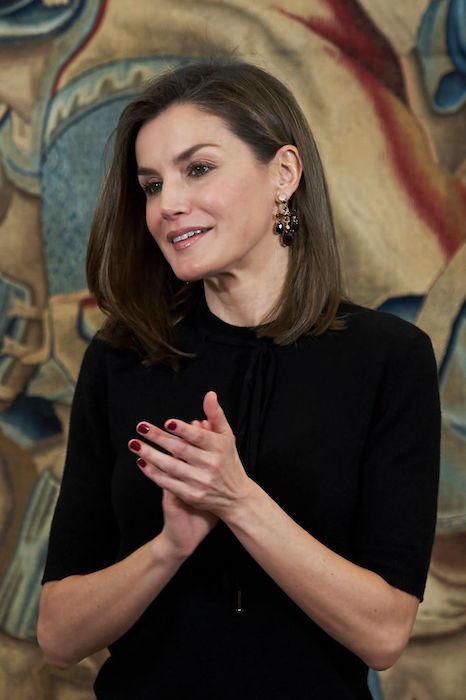 تفضل الملكه ليتيزيا، ملكه اسبانيا طلاء الأظافر باللون الاحمر الداكن وتظهر به في اغلب الأوقات.