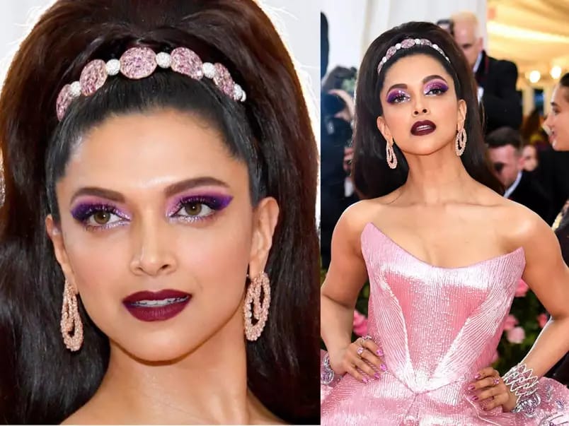 في احد حفلات الميت جالا اطلت الممثلة الهندية ديبيكا بادكون بظلال العيون الجرئية باللونين الوردي والارجواني الداكن وطبقت حمرة شفاة باللون النبيتي الغامق وبدت كأنها أميرة من اميرات ديزني.