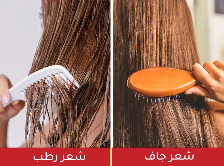 عندما يكون الشعر رطبًا، يكون في أضعف حالاته. فرك شعرك بمنشفة جافة يمكن أن يتلفه أيضًا. أفضل طريقة لتجفيف شعرك بأمان هي السماح له بالجفاف بشكل طبيعي.