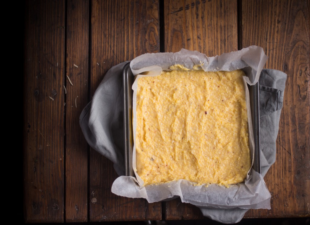 المقادير: عصيدة ذرة مطهية، زيت زيتون، جبن جاف.
