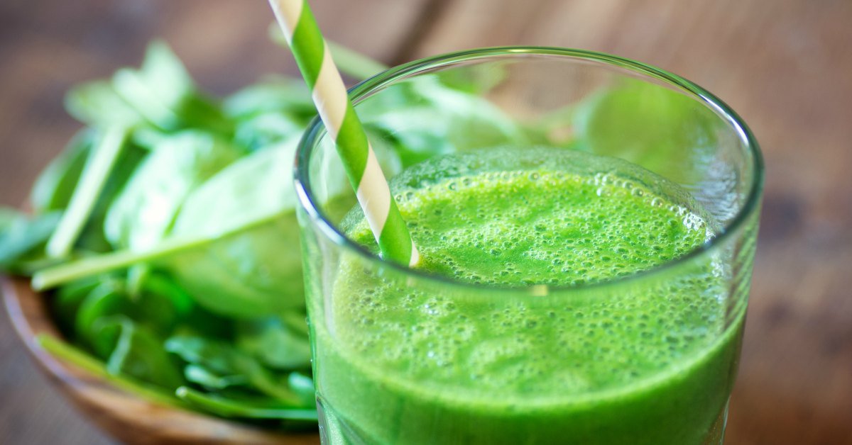 المكونات: (جزء من أوراق الكرنب – حفنة من السبانخ – أوراق الخس الفرنجي – 2 ثمرتي تفاح أخضر – قليل من جذور الزنجبيل – حبة ليمون).