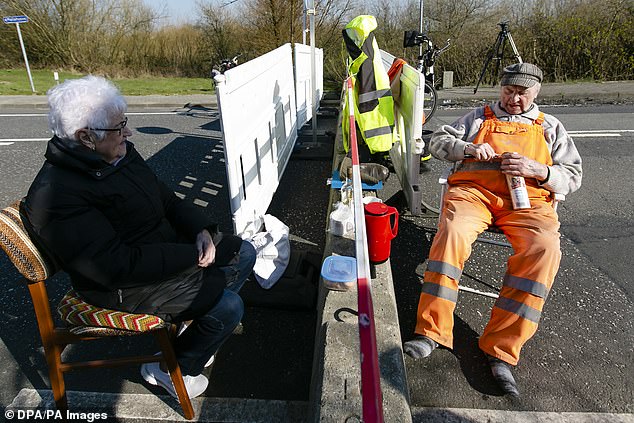 ويجتمع المسنان على الحدود المغلقة ببلديهما، وذلك بشكل يومي لتناول مشروب والتحدث إلى بعضهما البعض، وسط إغلاق الحدود بسبب فيروس كورونا.