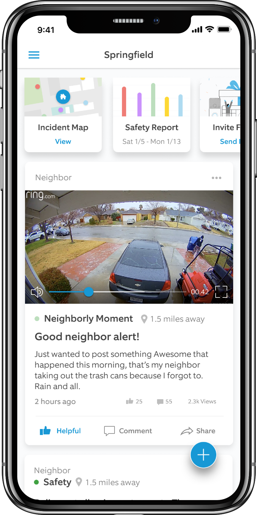 جهاز"Ring" الذي تملكه شركة أمازون، بات الآن يسمح لمستخدميه بمشاركة الأمور الجيدة التي تحدث في الحي عن طريق التطبيق الخاص به الذي يدعى (Neighbors)، لتحل بدلًا من الأمور السيئة الأخرى التي كانت يتم نشرها، ويمكنك تحديد ما تريد مشاهدته فقط بكل سهولة عند استخدامك لهذه التكنولوجيا.