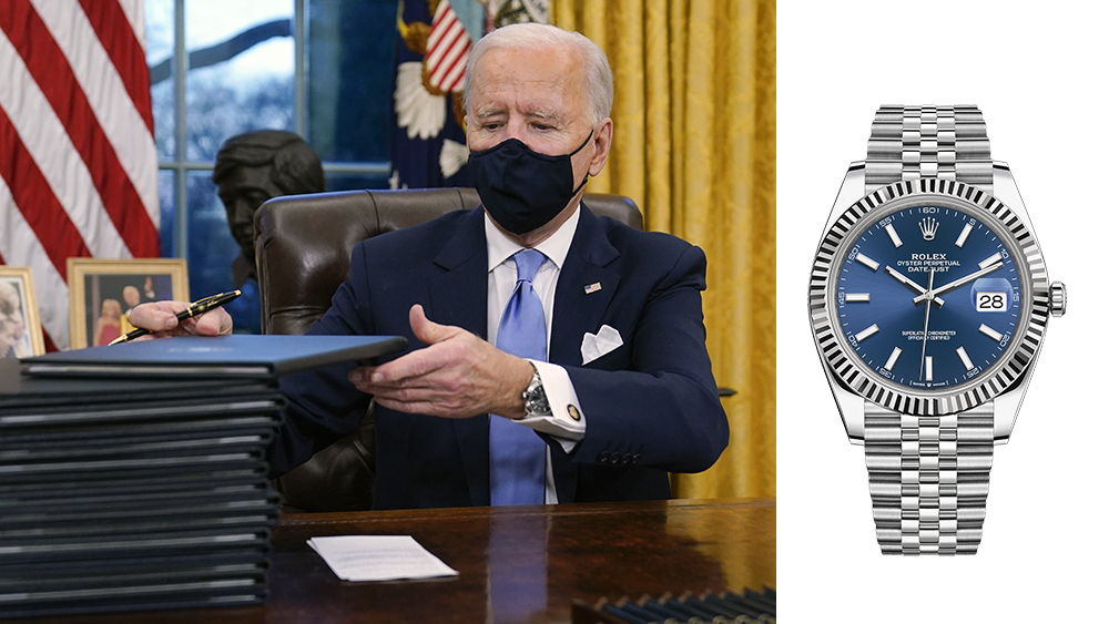 كما اختار "بايدن" أن يرتدي في أهم أيام حياته ساعة "رولكس" من طراز "ديت-جست".