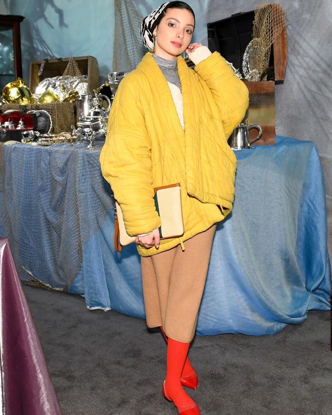لفتت الصحفية الامريكية ذات الأصول الليبية الأنظار بإطلالتها، حيث أطلت يوم السبت في الصف الأول من عرض مجموعة علامتي R13 و"براندون ماكسويل"، بإطلالة مفعمة بالألوان، جمعت فيها بين معطف باللون الأصفر وتنورة بيج مع حذاء وجوارب باللون الأحمر الزاهي، واعتمدت مكياج ناعم مع تربون باللون الأبيض والأسود.