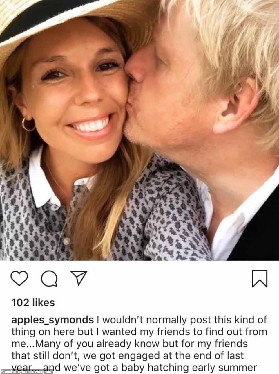 أعلن رئيس الوزراء البريطاني، بوريس جونسون وشريكته كاري سيموندز خطبتهما وانتظارهما طفلاً في أوائل الصيف.