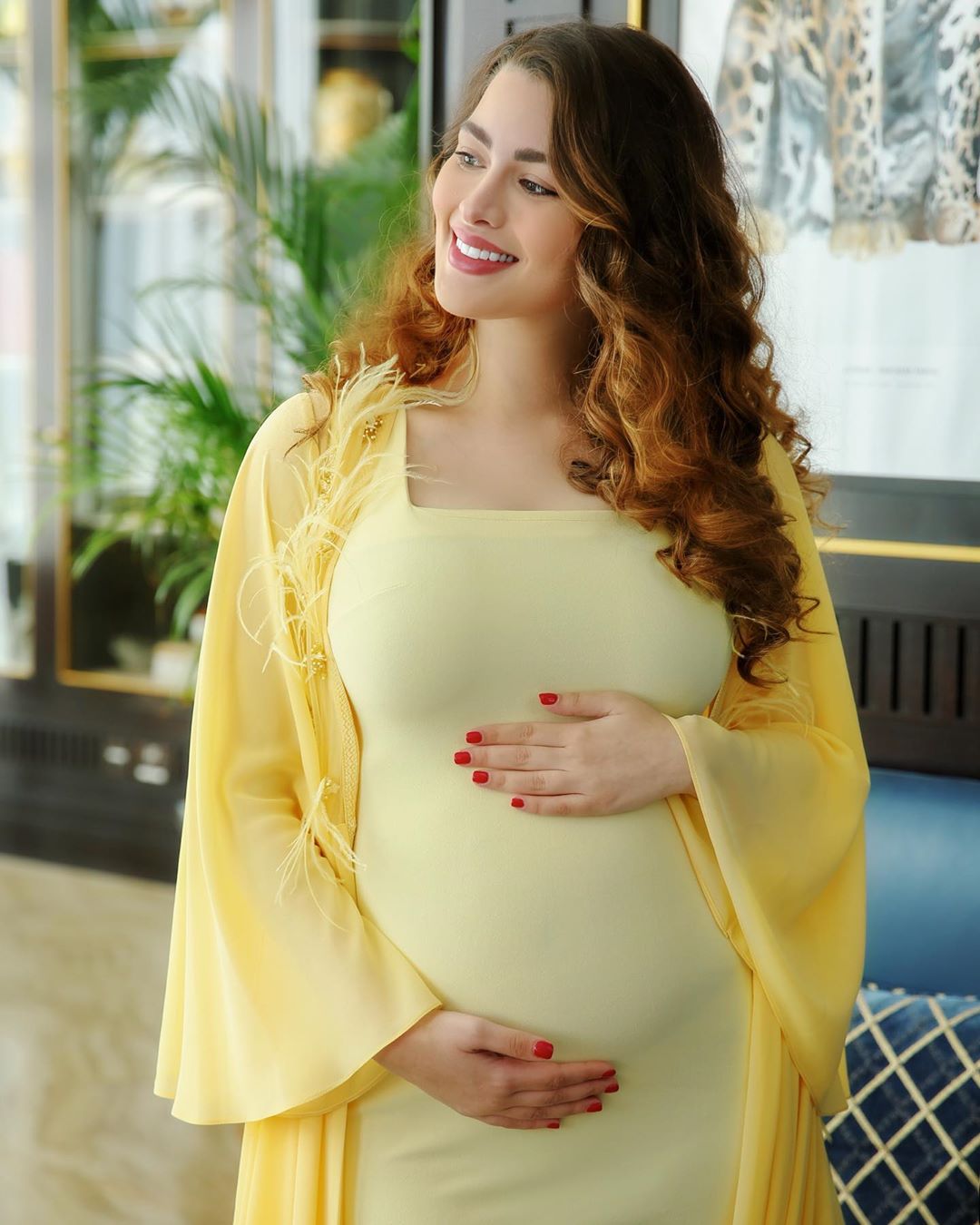فستان بهذا اللون والتصميم سيمنح أي سيدة حامل مظهرًا جميلًا وأنيقًا على حد سواء.