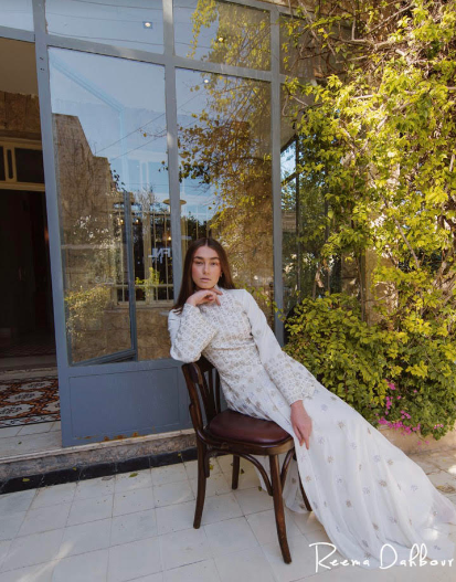 وهو من مجموعة المصممة الأردنية الشابة ريما دحبور للعرائس عام 2021، واستغرق العمل على الفستان الذي وصفه الجمهور بـ الأنيق والملكي ما يقارب الـ 6 أشهر، وعمل عليه عدد من السيدات الأردنيات.