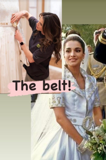 ويبدو أن الملكة رانيا الياسين تعمدت أن تظهر بالصورة وهي تضع الحزام، حيث اتضح أنه خاص بفستان زفافها على الملك عبدالله الذي احتفلت به عام 1992.
